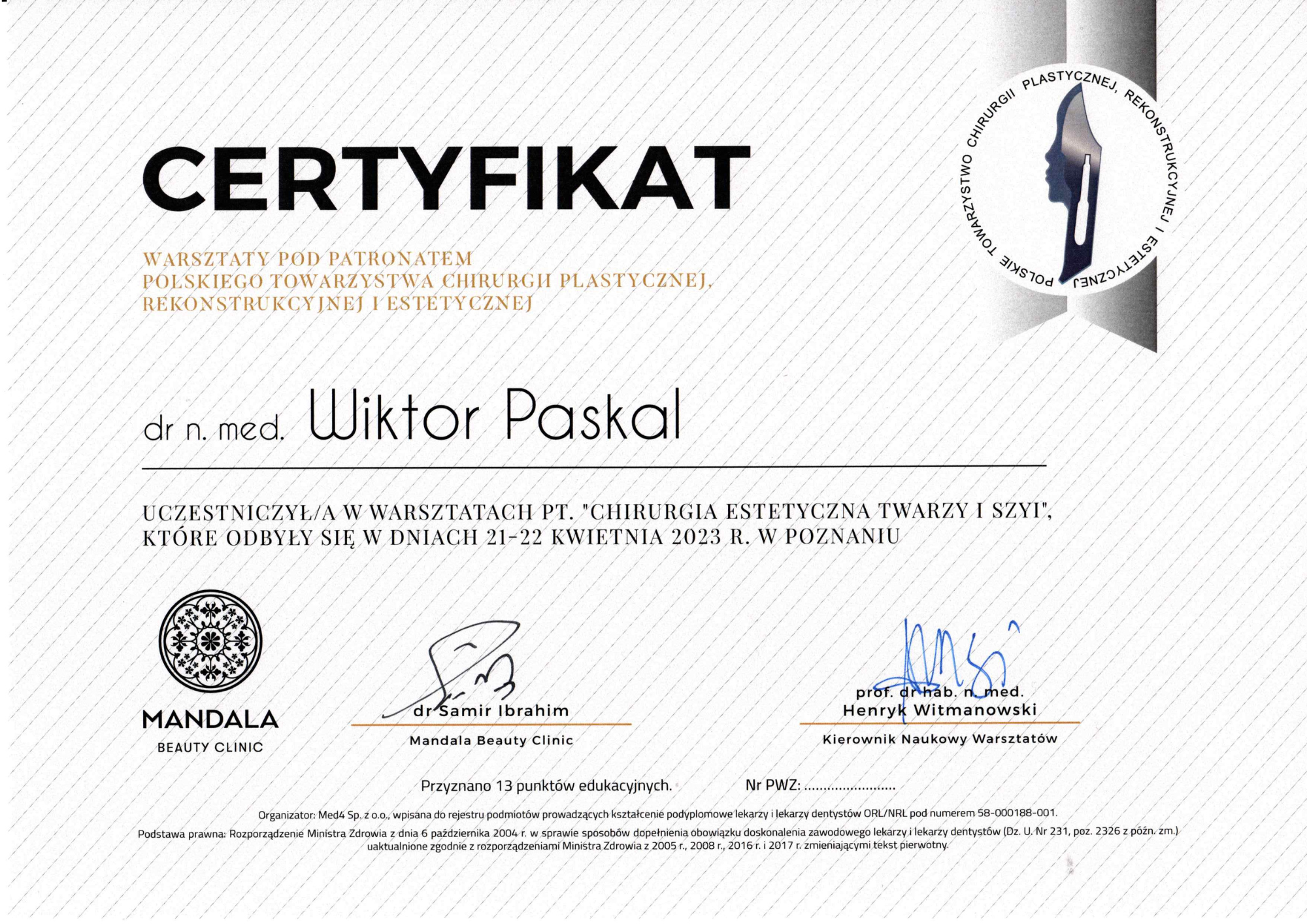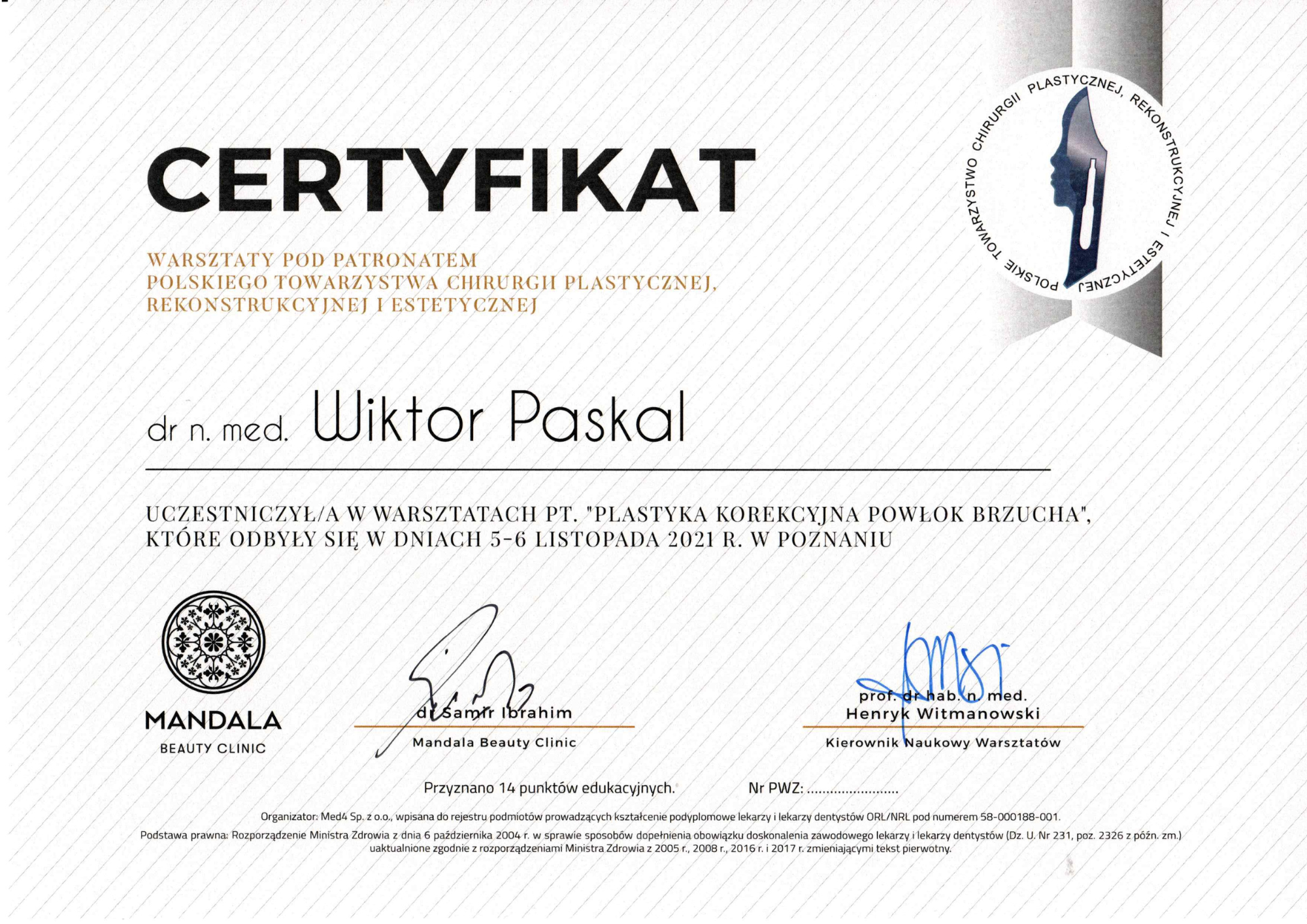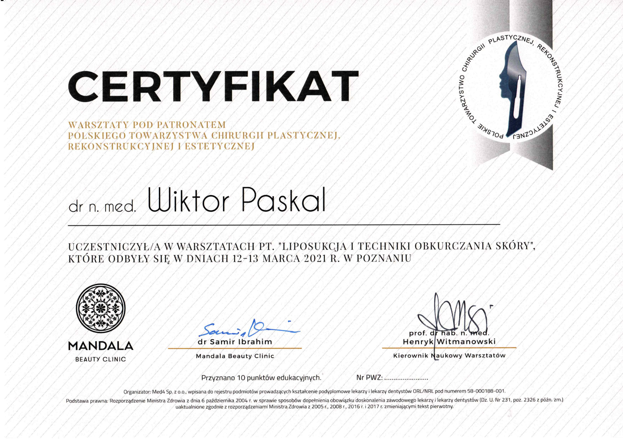 Szkolenie specjalizacyjne w dziedzinie chirurgia plastyczna – Szpital Praski, Warszawa (moduł podstawowy), Oddział Chirurgii Plastycznej, Dolnośląski Szpital Specjalistyczny im. T Marciniaka we Wrocławiu (moduł specjalistyczny)