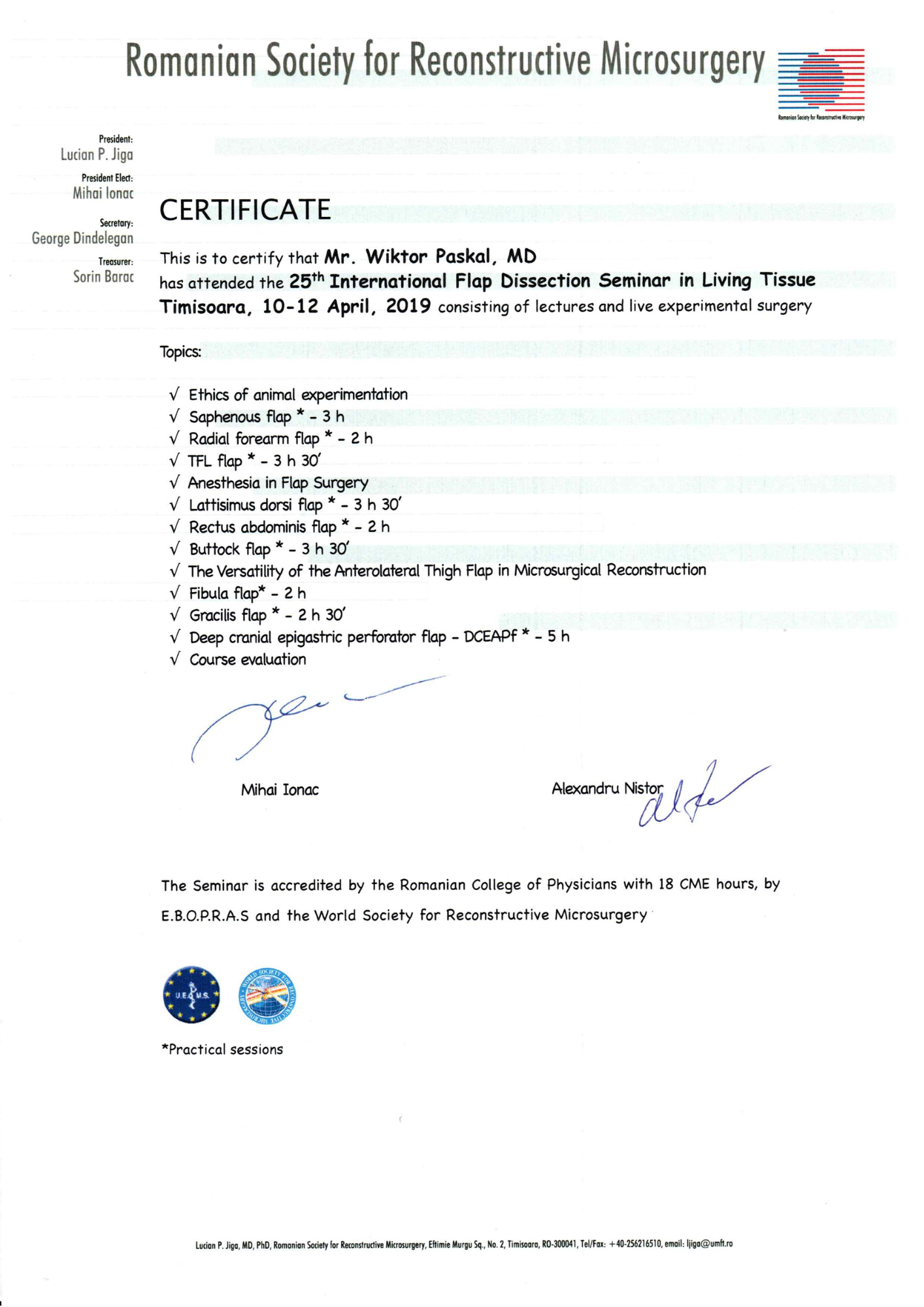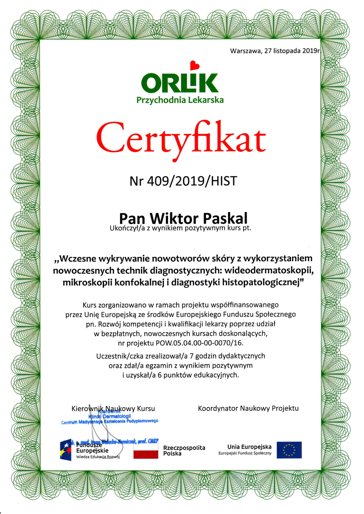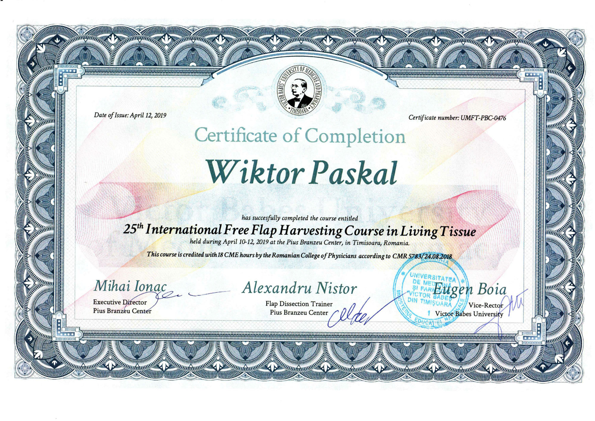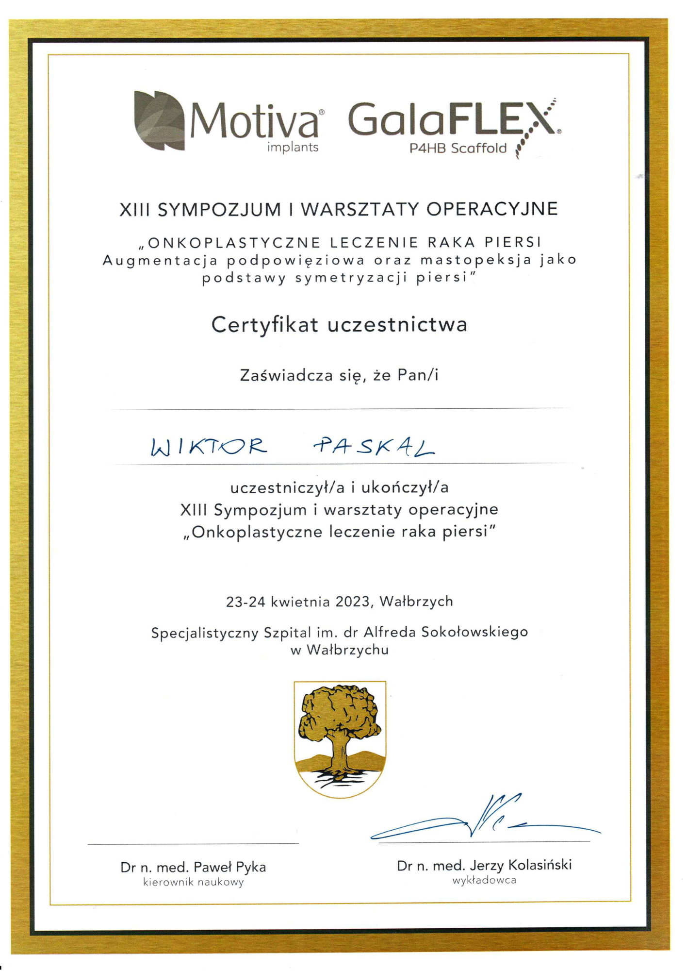Szkolenie specjalizacyjne w dziedzinie chirurgia plastyczna – Szpital Praski, Warszawa (moduł podstawowy), Oddział Chirurgii Plastycznej, Dolnośląski Szpital Specjalistyczny im. T Marciniaka we Wrocławiu (moduł specjalistyczny)