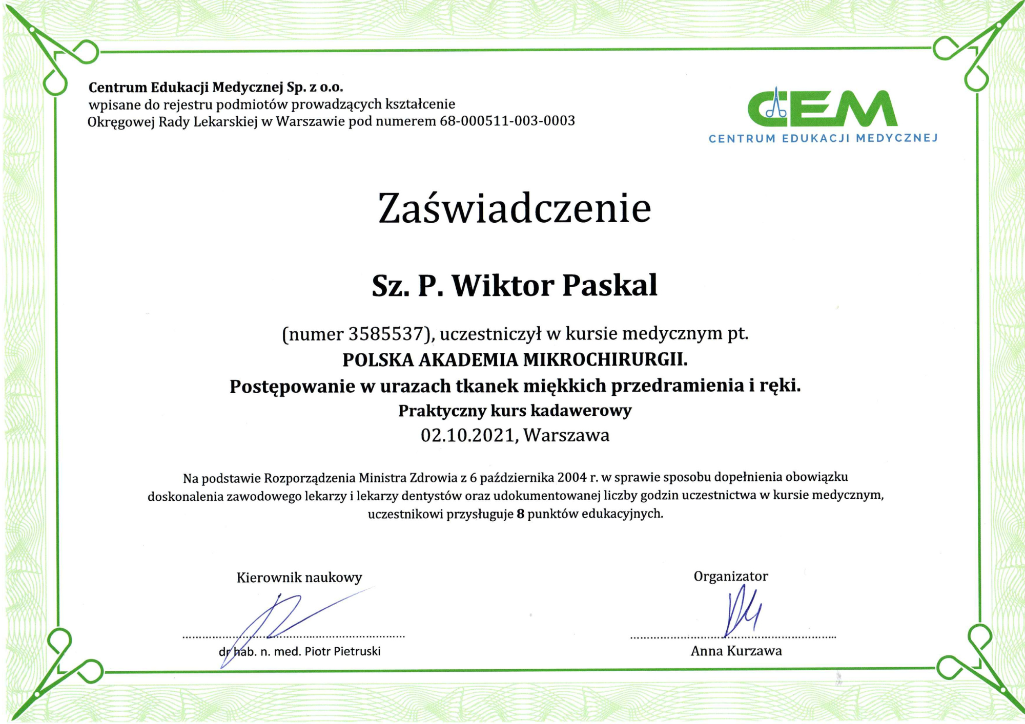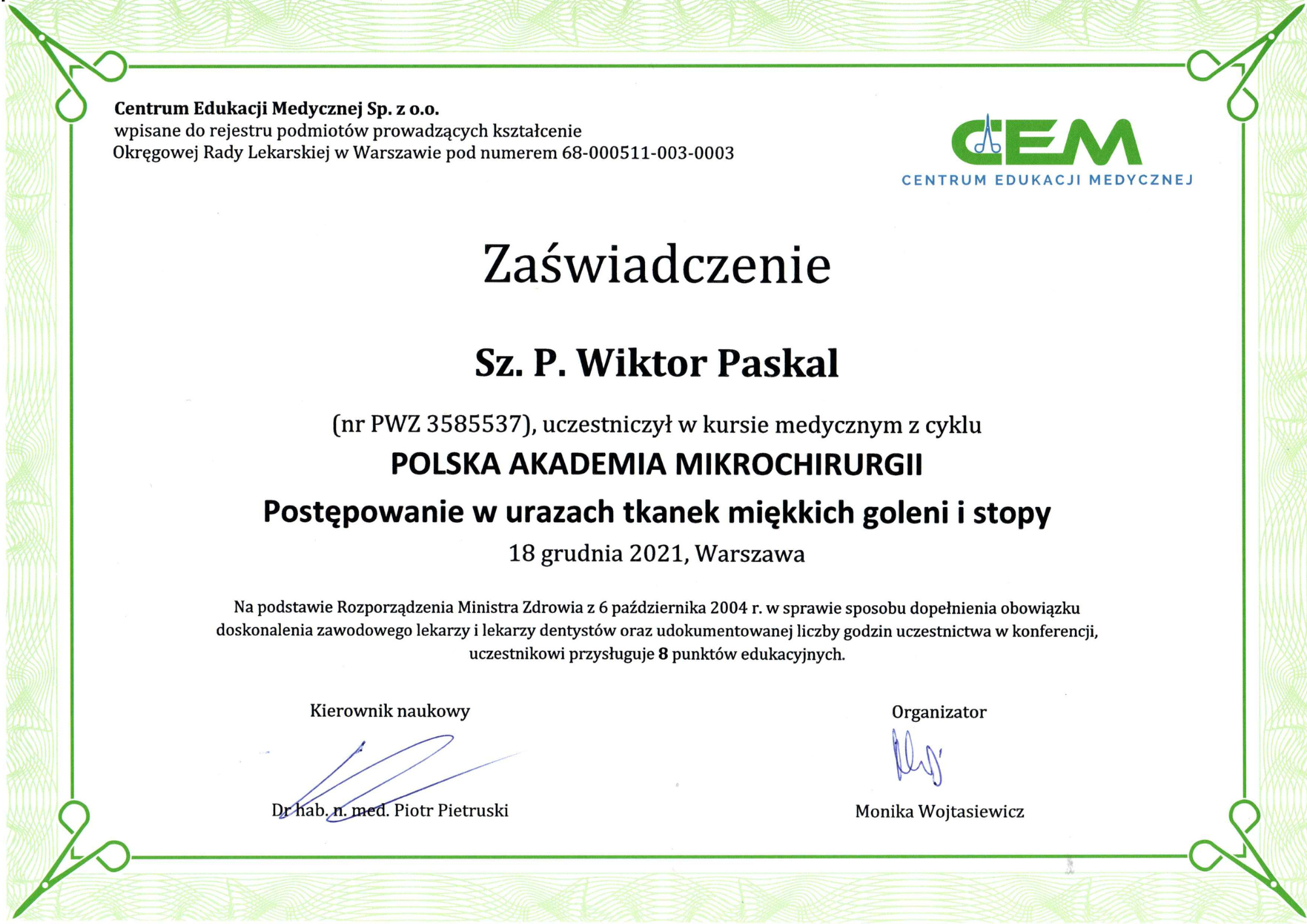 Moje zaangażowanie oraz nieustanny rozwój w dziedzinie chirurgii plastycznej pozwalają mi osiągać naturalne, harmonijne i przede wszystkim bezpieczne rezultaty.