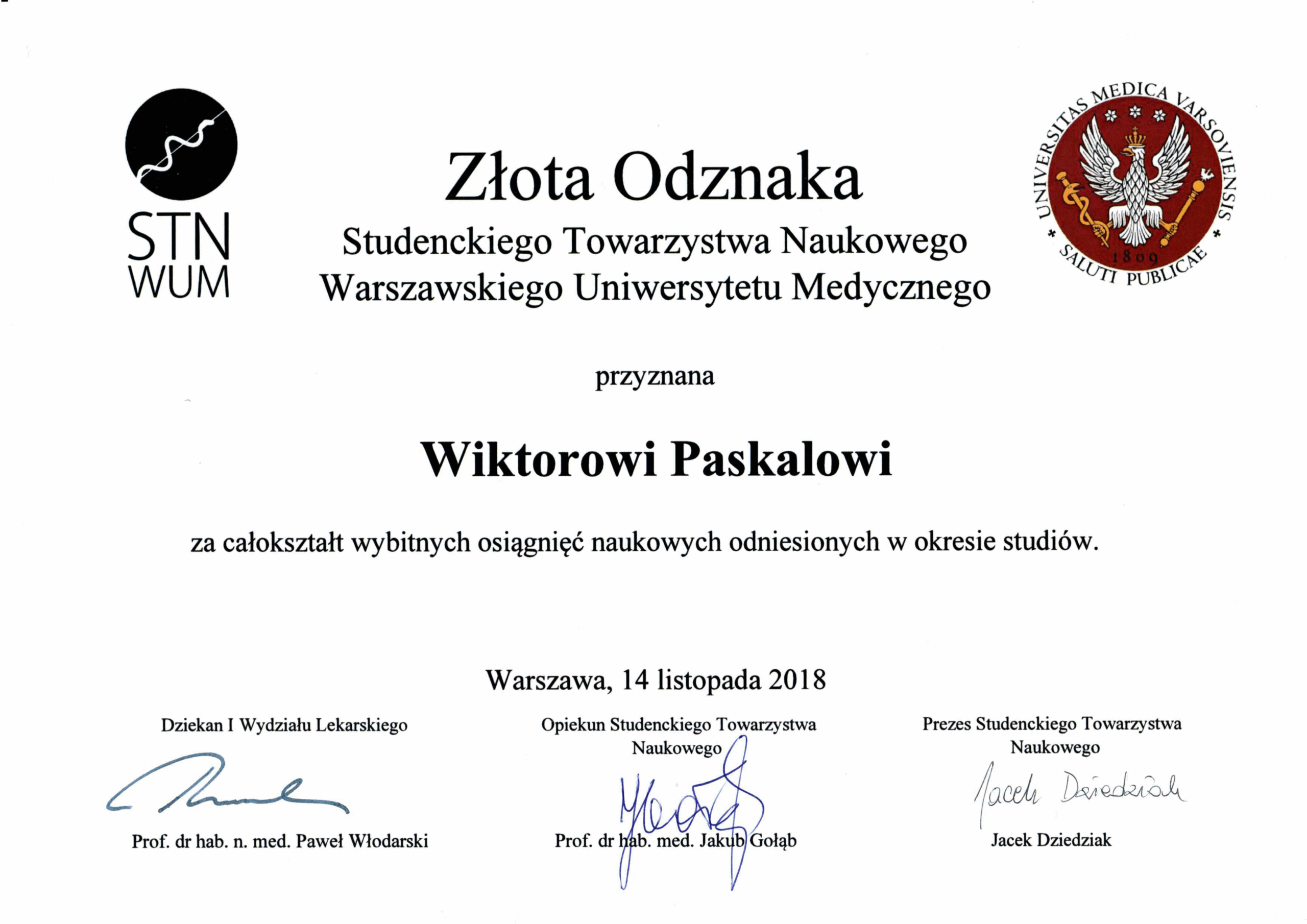 Jestem kierownikiem i opiekunem licznych projektów naukowych finansowanych przez Warszawski Uniwersytet Medyczny i Ministerstwo Nauki i Szkolnictwa Wyższego.